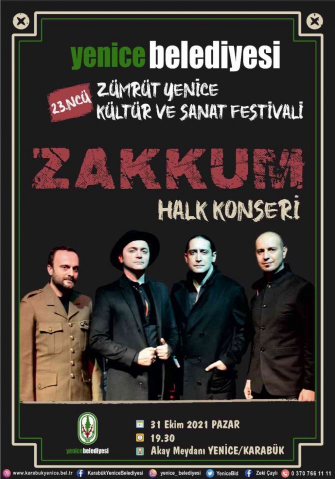 Yenice Belediyesi tarafından bu yıl 23 ncüsü düzenlenecek ve 5 gün sürecek Yenice Kültür ve Sanat Festivali, 27 Ekim 2021 Çarşamba günü başlıyor.
